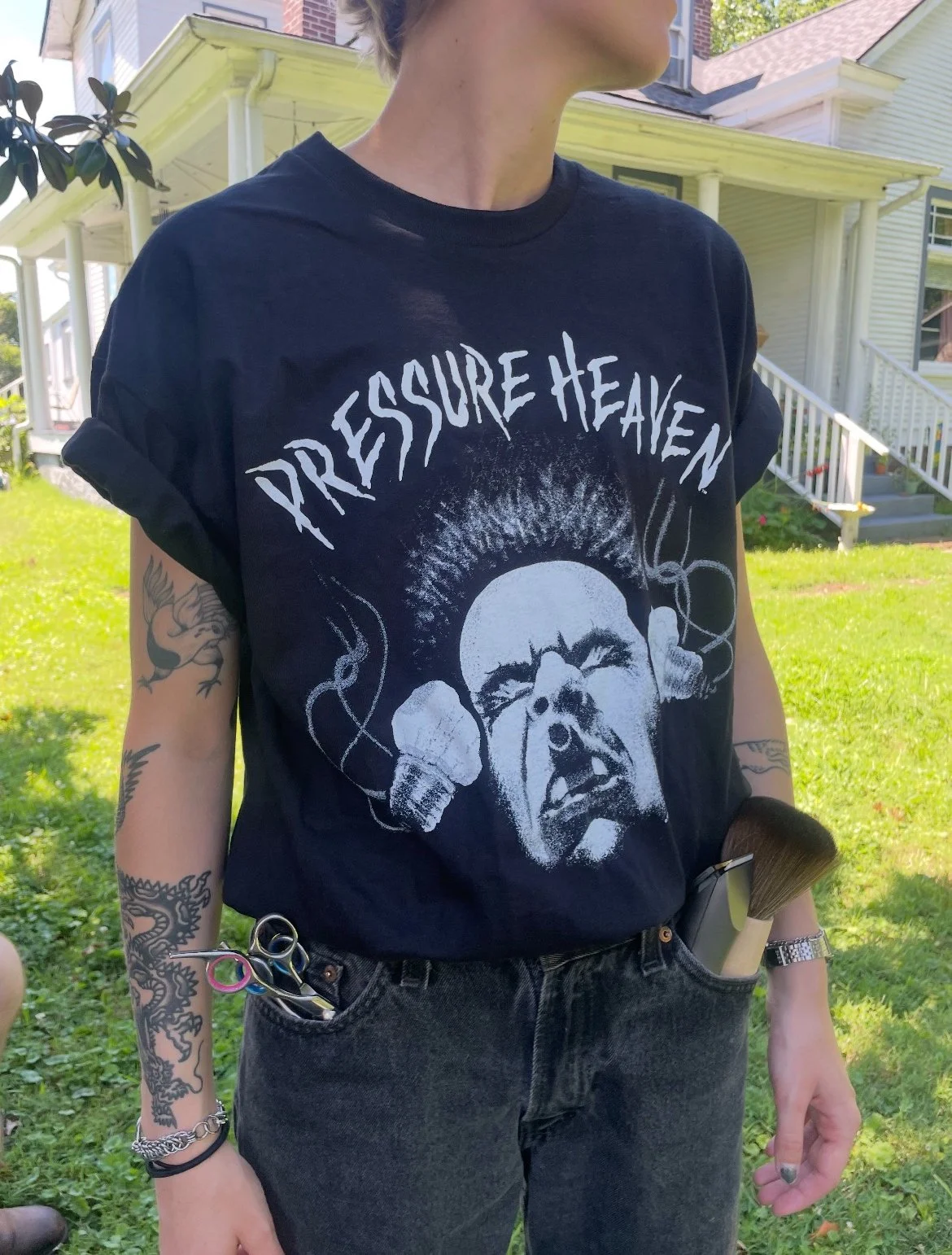 Pressure Heaven formed in Nashville, from the initial collaborations between Grace Hall and Collin Thompson in 2023. Notably, their sound is marked by ethereal, trance inducing melodies and industrial grit—blending driving beats, crushing guitars and swirling synth arrangements. Lyrical themes touch upon modern dystopia and personal vulnerability, as an exploration between beauty and chaos. Members include Grace Hall (vocals), Collin Thompson (guitar), and Lucas Bowers (drums).Their debut EP, “Head Start”, is out now.